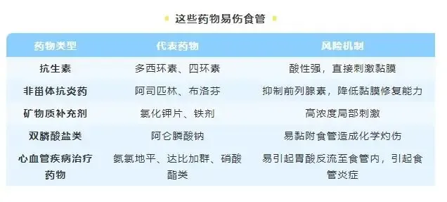 除了张先生服用的多西环素以外,抗生素类(四环素等)、非甾体抗炎药(阿司匹林、布洛芬等)也可能引起食管毁伤和溃疡。是以,服用这些药物时需严格恪守医嘱。