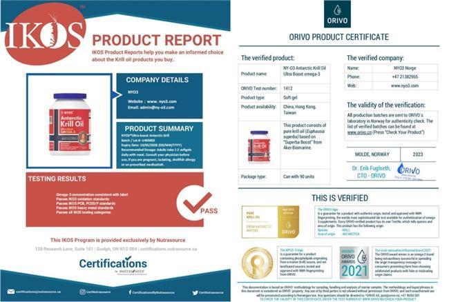 (4)磷虾油领域巨擘品性盖印,天下唯独“ORIVO+IKOS”金标双认证ORIVO执行室是天下最严苛的Omega-3因素检测机构。NYO3磷虾油居品清醒五年检测及格率100%,成为天下第一家、挪威唯独一家清醒五年天下商场抽检0残障品牌。更是唯--家同期领有IKOS认证居品、原料双认证等多项海外认证品性保险品牌。辛苦打造质料零残障的纯南极磷虾油安全居品。另外居品通过好意思国FDA、ISO、NON-GMO及WADA无昂扬剂认证,相宜奥运会级安全法式。
