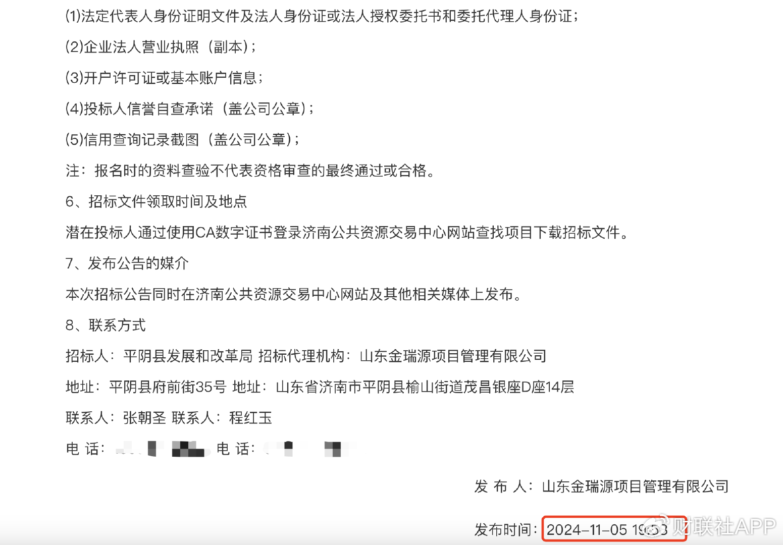 《科创板日报》记者就此事向平阴县发改委该招标事宜负责方致电采访,狂妄发稿,电话并未接通。